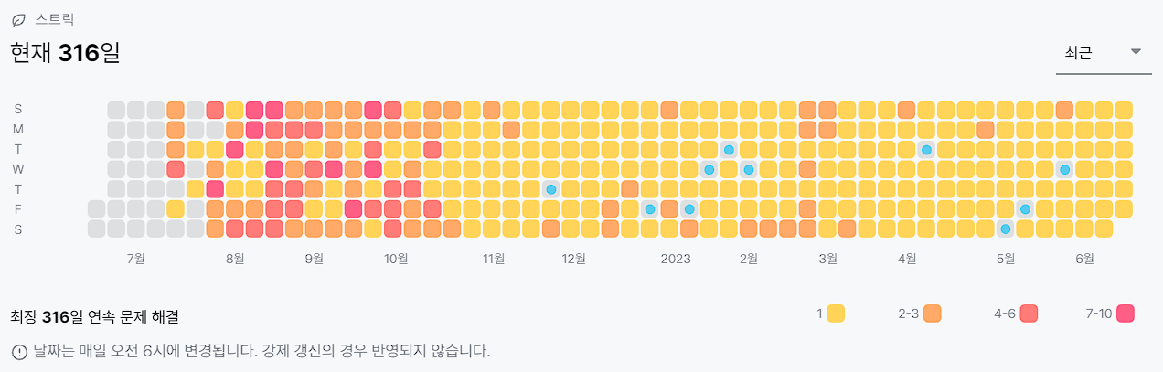 (하지만 감을 잃지 않기 위해 꾸준히 낮은 수준의 문제라도 풀어내는 것은 중요하다고 생각하여 꾸준히 풀었다)